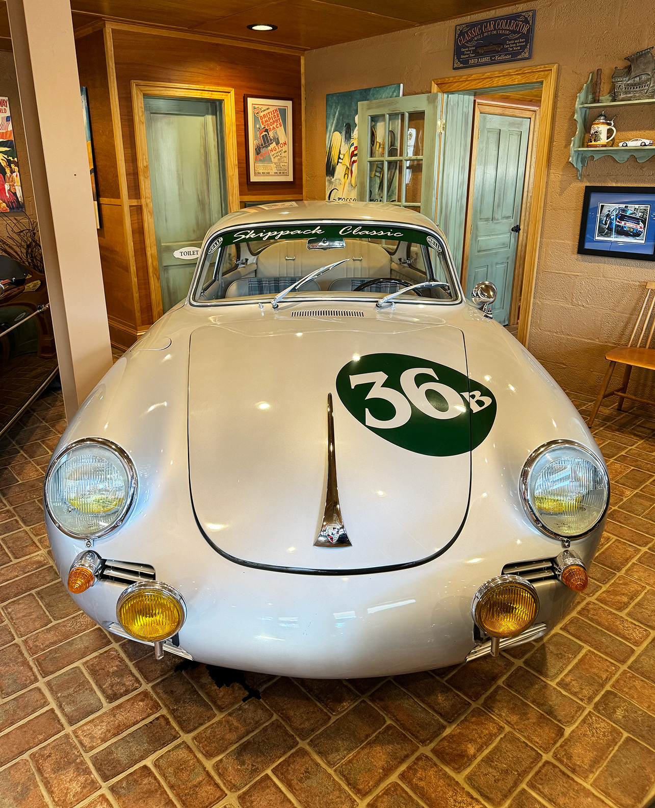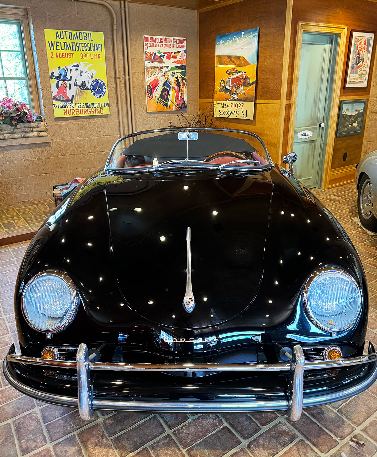 Dave’s Garage #9 has 2 sections. One section has a fine selection of early Porsche 356s. There is a 356A Speedster, 356B rally car and 3, 356C examples. There is also an early 1960s BMW motorcycle in this section. All vehicles exemplify the classic qualities that Porsche and BMW built their brands on.