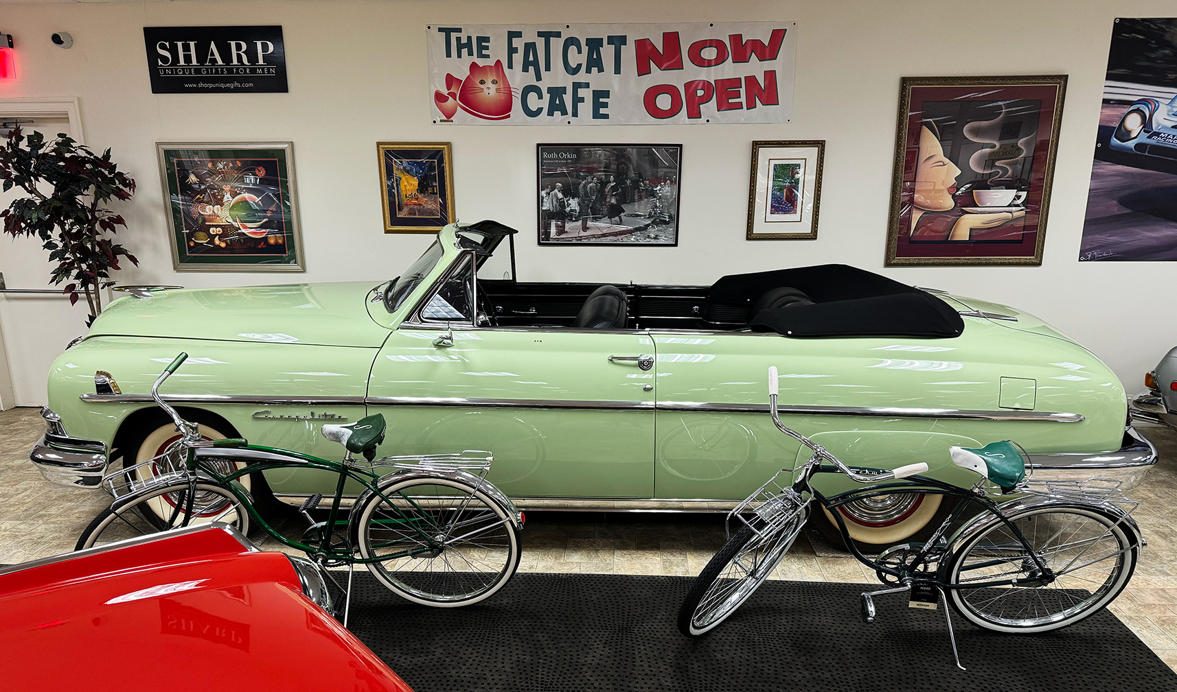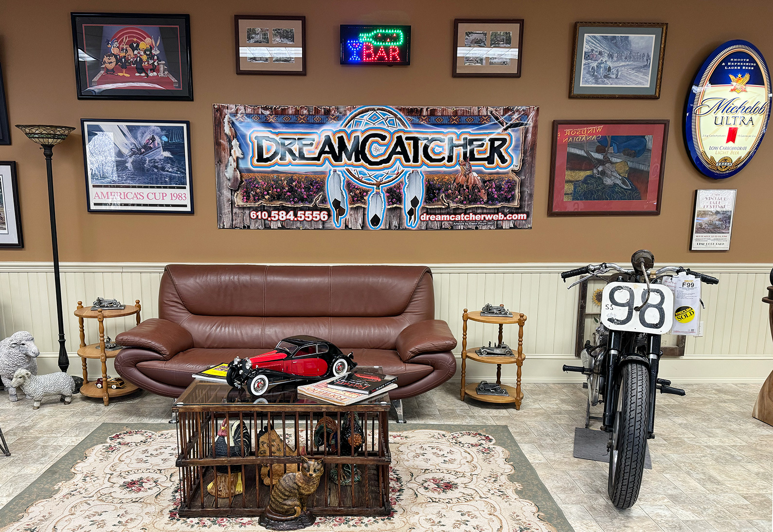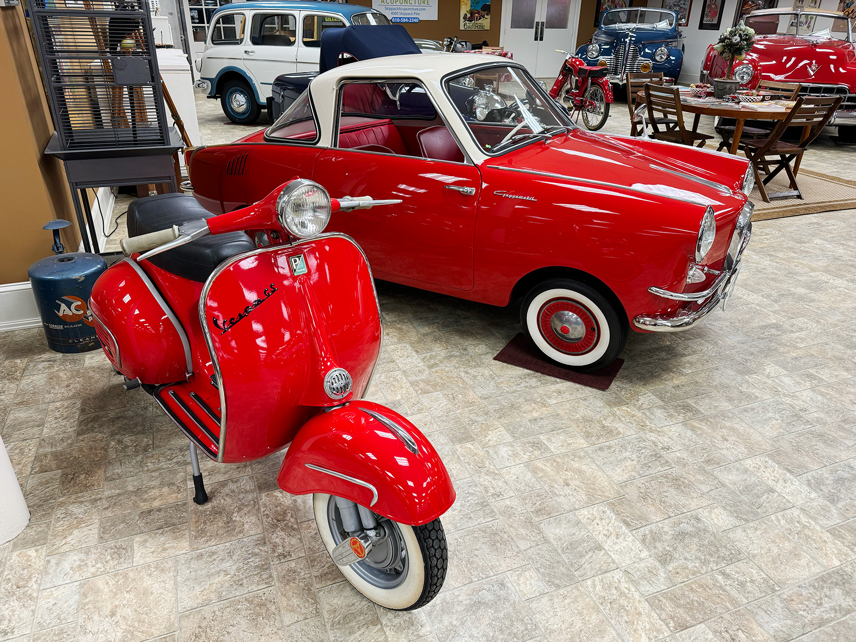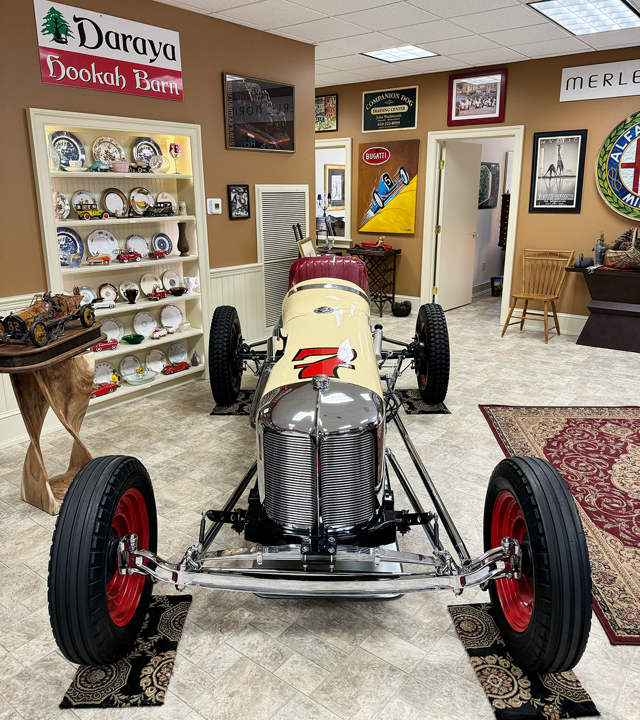 This inviting garage presents a harmonious blend of classic cars and rare antiques, each with its own story to tell. From elegant vintage automobiles to carefully preserved artifacts, the space captures the essence of a bygone era. Visitors are treated to a journey through time, surrounded by pieces that reflect timeless style and craftsmanship.